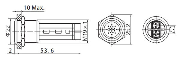 | 安装面板厚度 | 0.394" (10.0mm) | ||